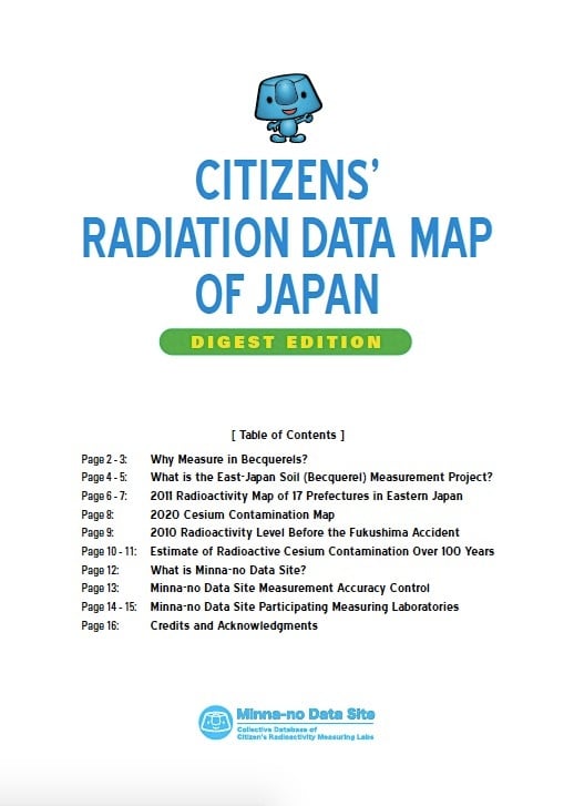 2018年11月に自費出版で発行したところ、大きな反響を得て、現在までに異例ともいえる1万8,000冊を発行している『図説・17都県放射能測定マップ+読み解き集』。3,400地点を超える土壌サンプルを、市民のべ4,000人が3年間かけて同一手法で採取し市民放射能測定室で測定し、そのセシウム濃度を色別に表した地図の英語版ダイジェストです。